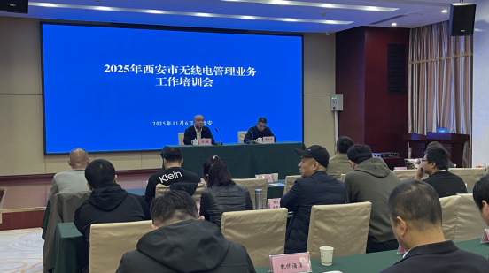 2025年11月6日,为进一步加强无线电管理专管员队伍建设,省无委办西安市监测站组织召开2025年西安市无线电管理业务培训会。西安市主要设台单位业务负责同志、无线电发射设备销售备案企业负责人、西安市无线电通信学会及省无委办西安市监测站工作人员共计92人参加培训。
