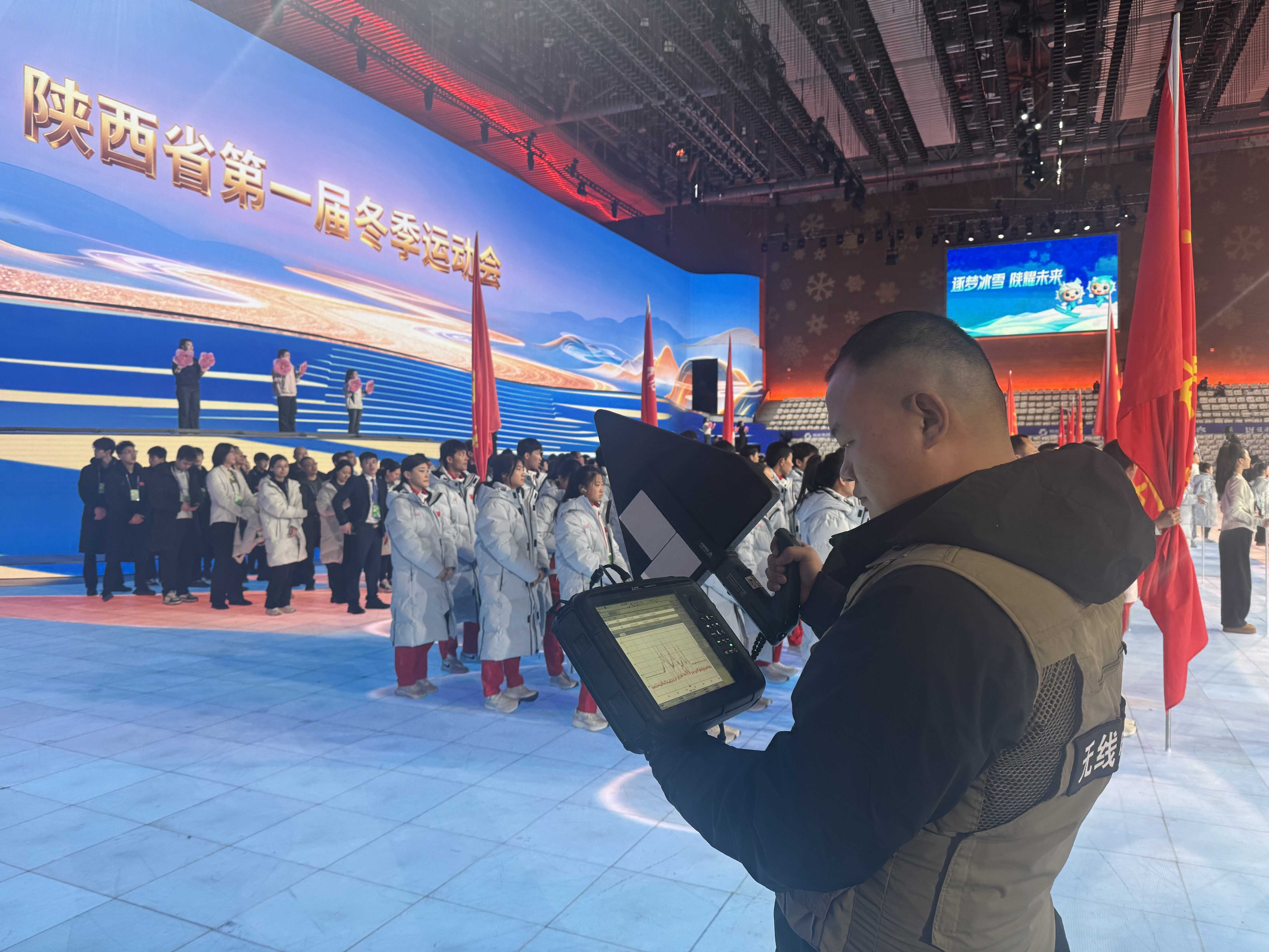 为确保开幕式期间无线电用频安全,榆林市管理处制定了周密的保障工作方案和应急预案,健全指挥体系,明确岗位职责、细化工作措施,统筹推进各项保障工作有序开展。累计为省一冬会开幕式工作组、文艺演出导演组、陕西广电融媒集团、国家电网、公安、安保等15家重要用户单位指配频率80余条,完成各类无线电发射设备检测贴标1500余台。