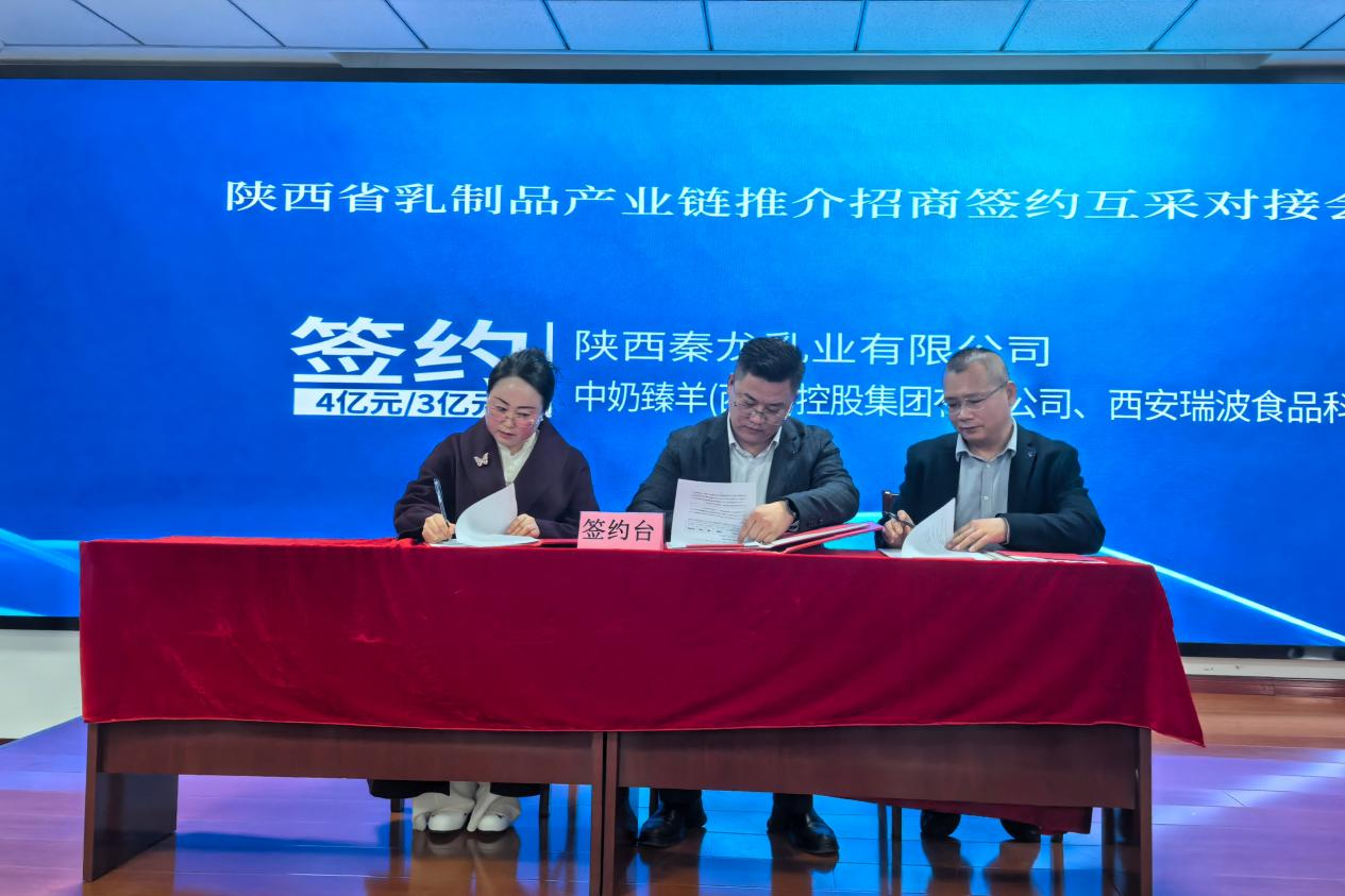 会上,省工业和信息化厅总工程师武斌介绍了全省乳制品产业发展情况,西北农林科技大学教授、陕西省奶羊产业技术体系首席专家曹斌云发布了西北农林科技大学联合西北工业大学、陕西师范大学、西北大学、陕西科技大学等院校羊乳科技研发团队十大科研成果,和氏乳业、秦龙乳业、圣泉乳业等产业链重点企业进行主题推介与需求发布,“陕西臻品”及中国银行陕西省分行、浙商银行西安分行“臻品贷”项目有关负责人作专题推介,圣泉乳业、博羚乳业、江苏隆力奇生物科技等13户企业8个具有代表性的项目上台签约。