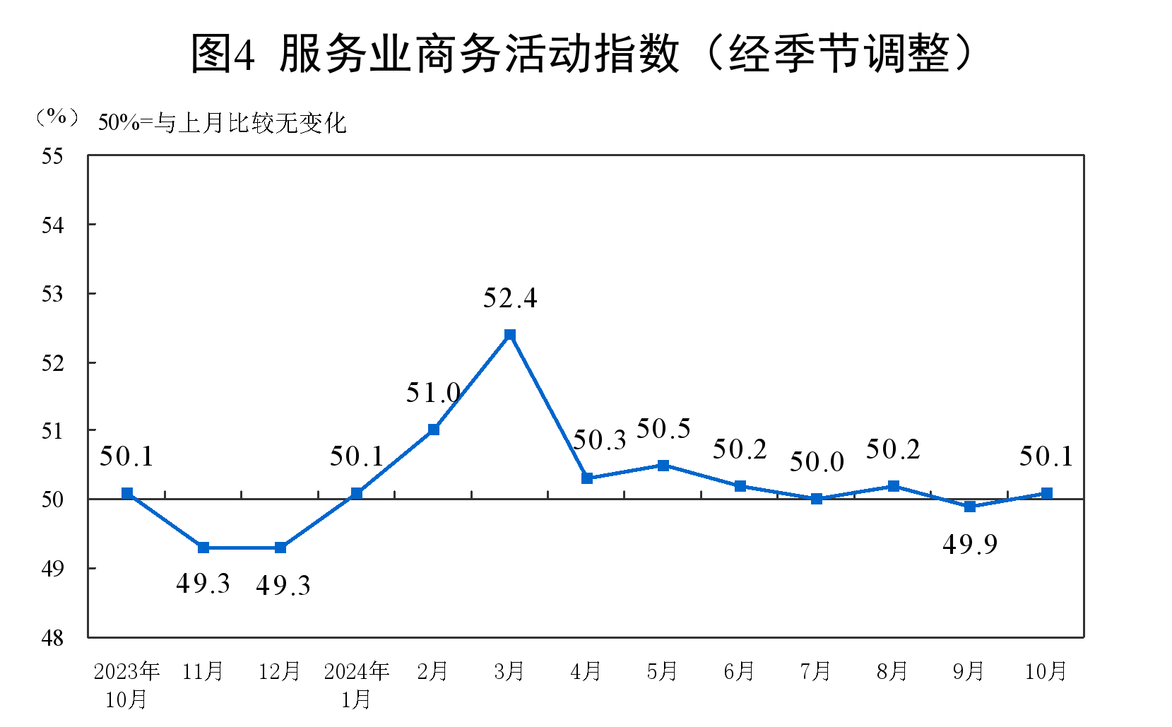 10月份,非制造业商务活动指数为50.2%,比上月上升0.2个百分点,非制造业景气水平小幅回升。