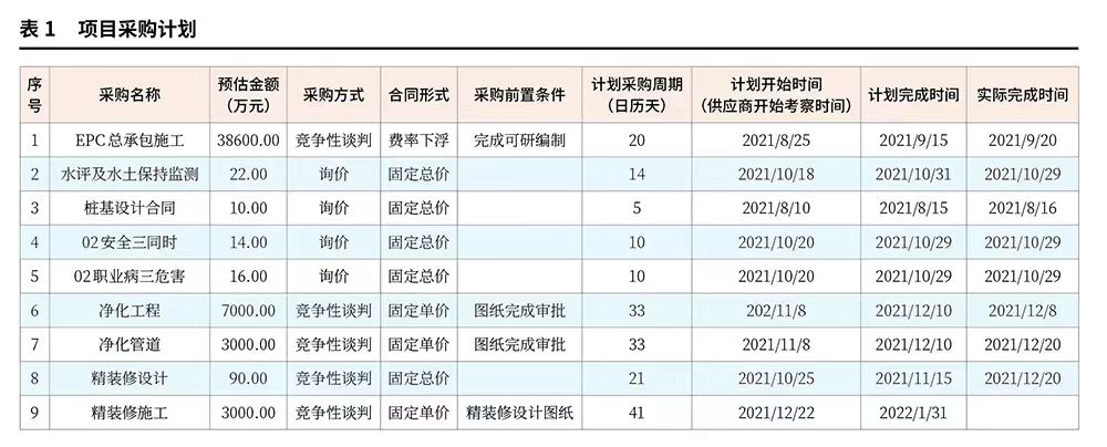 随着新冠疫情不断蔓延,上海某医药企业需紧急建设疫苗研发及生产车间,建设项目被当地政府认定为应急抢险工程。笔者单位作为全过程工程咨询单位(以下简称全咨单位)为该项目提供项目管理服务,服务内容包含现场管理、勘察设计管理、招标采购管理、成本管理、合同管理等,通过优化采购制度、编制项目合约规划及采购计划、总承包项目采购策划等方式,缩短了采购时间,满足了项目成本控制要求及合规性要求。