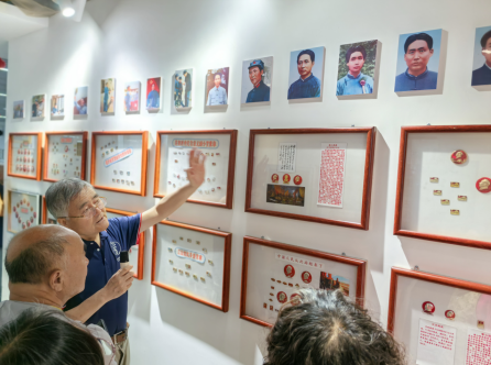 公司内还建立了像章展览馆,分门别类的陈列了全国各地在不同时期制作的主席像章上千枚。