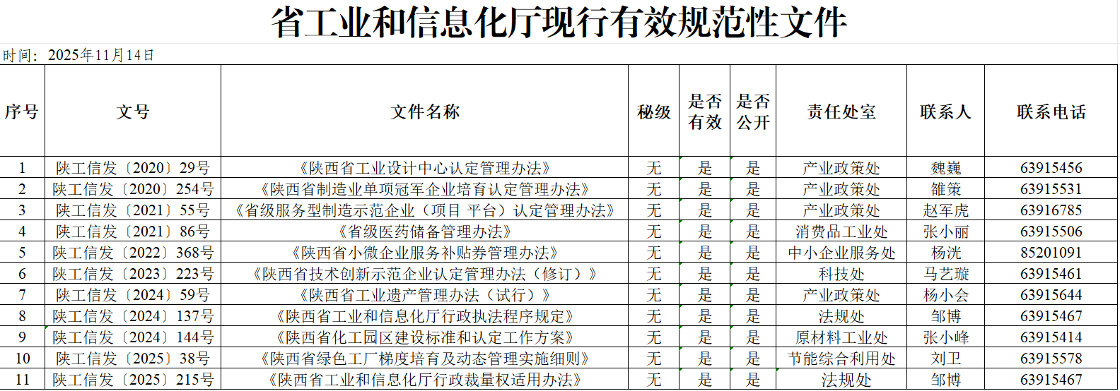 【规范性文件】陕西省工业和信息化厅现行有效规范性文件总览表